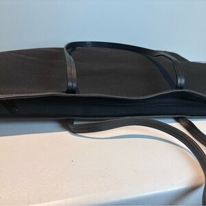 Stylish and versatile Cleobella black canvas tote with vegan leather trim. This large, structured tote is perfect for everyday use, travel, or work. Classic design with roomy interior and secure zip closure.