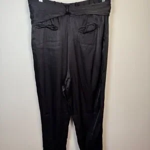 ett:twa by Anthropologie Black Satin Tie High Waist Pants Size 12