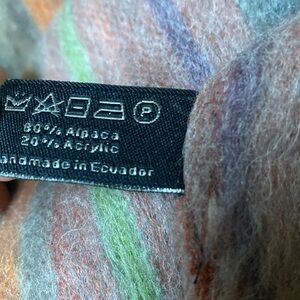 Shupaca 13x80in multi-color stripe Alpaca blend scarf. Muted colors and soft feel. Like new. 80% alpaca, 20% Acrylic