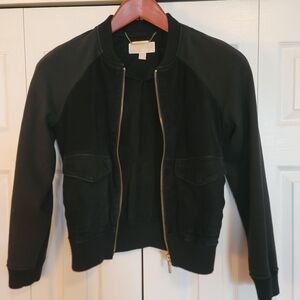 MICHAEL Michael Kors Black Bomber Jacket with Gold Accents