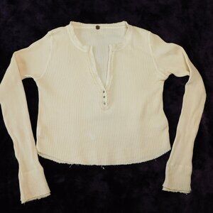Free People One cream waffle thermal Colt Long Sleeve Henley top. V-neck. Double cuffs.