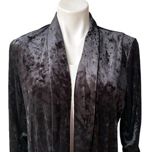 89th & Madison Black Crushed Velvet Open Front Blazer Cinched Sleeve Cuffs, Sz L