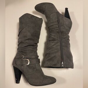 Apt 9 Gray Suede Heeled Boots - 9
