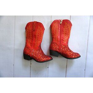 Cowboy Boots Red Glitter w/ Embroidered Design Western Style - Size 12