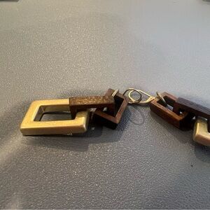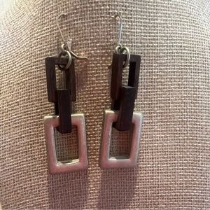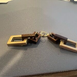 Stylish necklace featuring gold and brown geometric links. Perfect for adding a modern touch to any outfit. Earring dangles Approx. 2 1/2" . Closure is Leverback French hooks earring has a little weight to it from the gold link.