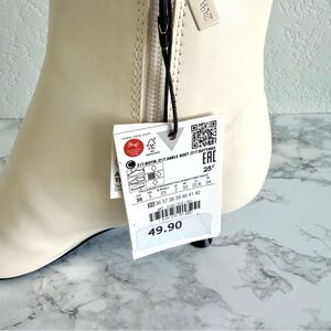 Chic cream Zara booties with sleek design. Perfect for versatile styling.