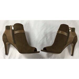 Elevate your style with these stunning Marc Fisher ankle heels. The open toe design and zip closure make them perfect for any casual occasion, while the brown color and stiletto heel add a touch of sophistication. These pumps are made of high-quality leather and have a heel height of 3-3.9 inches, making them comfortable to wear for long periods. The US shoe size 7 ensures a perfect fit, and the pump style is perfect for any summer, fall, or spring outfit. With the Marc Fisher brand, you can be sure that you are getting a product of high quality. Add these heels to your wardrobe and step out in style. Gently loved lots of life left. 👠