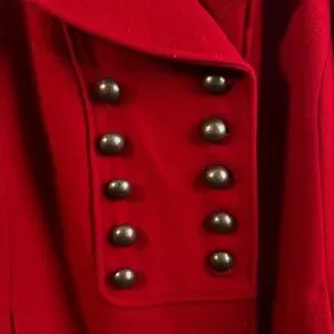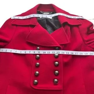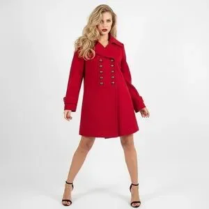 Styles: Double Breasted Coat, Wool Coat, Cashmere Blend Coat, Red Coat, Winter Coat, Outerwear, Jacket, Elegant Coat, Classic Coat, Button Detail Coat