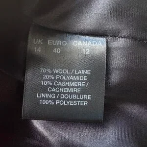 Material: 70% Wool, 20% Polyamide, 10% Cashmere. Lining: 100% Polyester