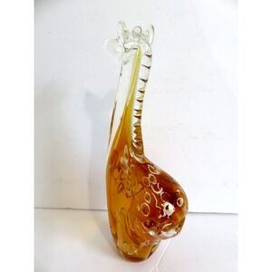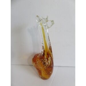 Add a touch of elegance to your decor with this stunning Fifth Avenue Crystal giraffe figurine. Crafted from hand blown amber glass, this art glass piece features intricate details that bring the subject matter to life. The giraffe's tall stature and unique shape are captured perfectly in this 10" figurine, making it a great addition to any collection. The figurine is produced using a hand blown glass technique, which adds texture and depth to the piece. The Fifth Avenue Crystal brand is known for its high-quality glassware, and this giraffe figurine is no exception. It's perfect for display in any room of your home and is sure to be a conversation starter.