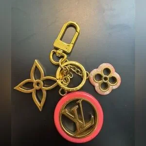 Authentic, chic Louis Vuitton charm and key holder in gold and pink with iconic design elements. Adds luxury to any LV handbag or use alone for an amazing key holder!