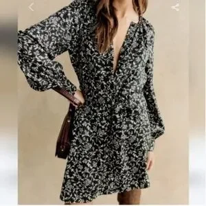 Sézane Merry Dress Floral Black Ecru Quiet Luxury French