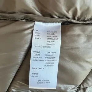 Shell, fill: polyester; lining: nylon; faux fur: modacrylic/acrylic/polyester