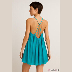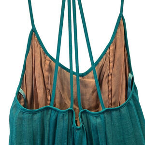 (T14). BCBG MAXAZRIA Dress, Size XXS, PTP 16”, L 28” with out straps, fully lined, Mini Dress, Blue/Green with Tan lining, Spaghetti straps, Material tag was removed & feels like cotton and gauze, flowing soft Dress