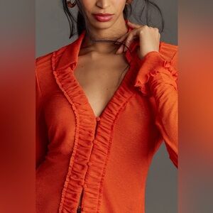 Anthropologie Long-Sleeve Textured Buttondown Top Size XL
