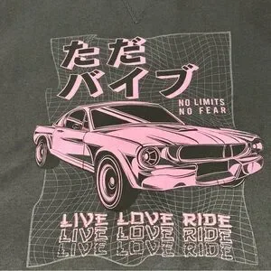 Hot Topic Pink Graphic Black Crewneck Unisex Retro Sweatshirt ‘Just A Vibe’ XL