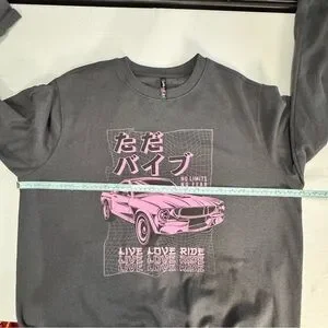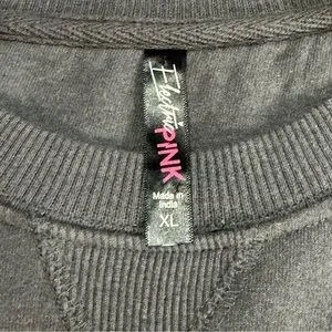 Stylish crewneck sweater. Features bold pink graphic on black fabric. Perfect for casual wear. Trendy retro style. Sz = XL Condition = Excellent Please review all photos for measurements and condition.