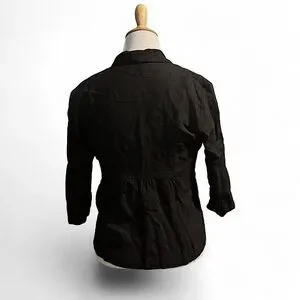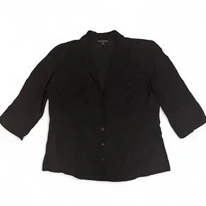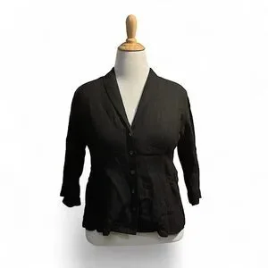 Eileen Fisher Petite PM Black Button Blazer Jacket Viscose Linen Blend Lightweight 3/4 Sleeve