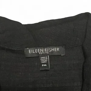 Eileen Fisher Petite PM Black Blazer Jacket Linen Blend Lightweight 3/4 Sleeve