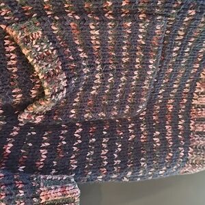 PHOTOS DO NOT DO THIS SWEATER JUSTICE. SIZE 2X BUT WOULD FIT XL FIR OVERSIZED COMFY FEEL. BEAUTIFUL NAVY AND LAVENDER