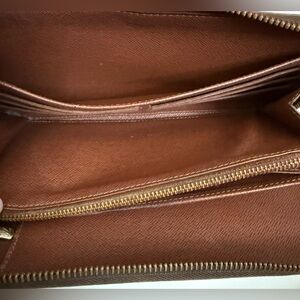 Authentic Louis Vuitton Monogram Organizer Wallet with full wrap-around zipper. This larger organizer style includes multiple card slots, full-length slip pockets, and an interior zip coin compartment. Perfect for travel, documents, or everyday use. Date code visible in photos.