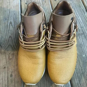 Esse Ut Esse Shoe Mustard & Brown Leather Fringe Sneaker Slip On Shoes 37/ 6.5-7