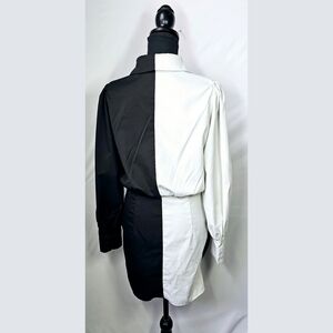 Chic black and white dress. Stylish color block design. Perfect for any occasion.
