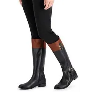 NWOT Black & Brown like riding boots Sz 5 M. Deeply discounted.Low Heel