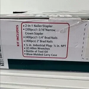 NIB!!!! Never opened . Versatile 2-in-1 nailer and stapler kit. Includes brad nails and crown staples. Comes with essential accessories.
