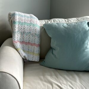 Excellent condition this is the cutest hand knit blanket, a few threads at the end
