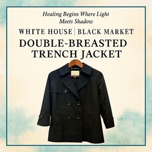 White House Black Market jacket, WHBM coat, black trench, double-breasted jacket, tailored outerwear, classic black coat, women’s trench coat small, minimalist chic, timeless style, fall winter layering