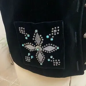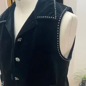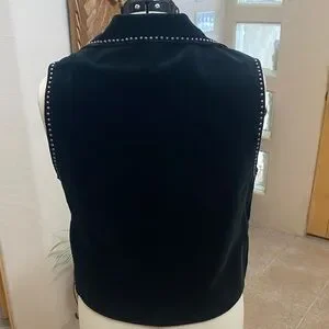 Chic black cotton velvet vest with silver embellishments and satin lining. Stylish and versatile. In like new condition.