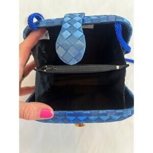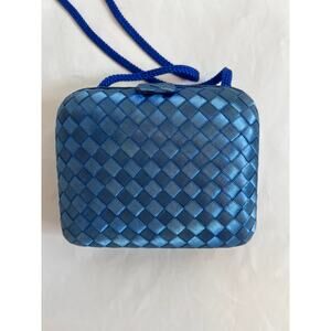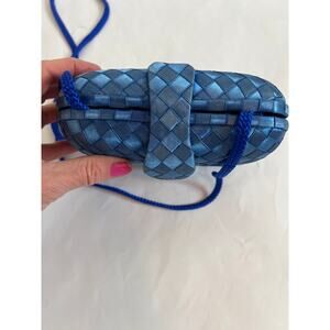 REGALE SMALL BLUE SATIN INTRECCIATO CLUTCH CROSSBODY PURSE WITH CORD STRAP