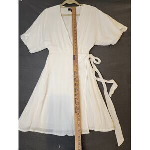 NWT Lulus White Wrap Short Gauzy Draped Dress Surplice Short Sleeve Tie Size S