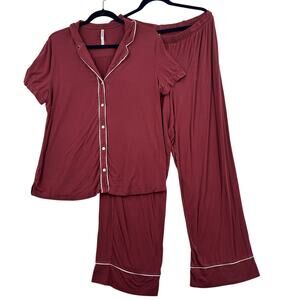 Soma Cool Nights Pajamas Size L Burgundy Red 2 Piece Set Button Top Pull On