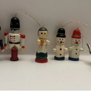 Vintage Wooden Christmas Ornaments Lot of 8 Hand Painted, Bird, Soldier, Snowmen
