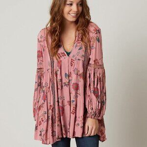 Free People Just the Two of Us Tunic Mauve Pink Floral Boho Oversized Top.