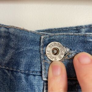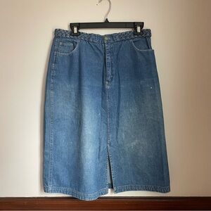 Vintage Y2K Blue Knee Length Denim Skirt with Slit and Braided Belt Detail