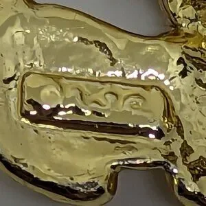 Santa and his reindeer come to life in this charming gold-tone brooch. A festive accessory that adds a nostalgic sparkle to holiday attire.