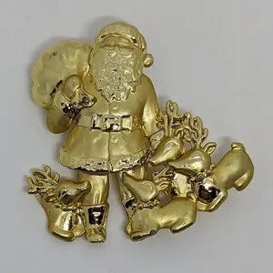 Santa Claus pin, gold-tone brooch, holiday jewelry, vintage accessory, reindeer pin, festive brooch, Avon jewelry, Santa pin, collectible brooch, holiday pin, Christmas brooch, gift accessory, nostalgic jewelry