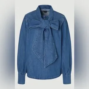 Brand new! This Karen Millen Denim Pussybow Blouse combines timeless elegance with contemporary denim styling. The statement bow adds a touch of sophistication to casual ensembles, whilst the cotton fabric ensures day-long comfort. Style with matching denim jeans and a leather belt for a coordinated daytime look, or tuck into a midi skirt for a more elevated ensemble. Perfect for a range of occasions, this blouse transitions seamlessly from day to evening. The versatile design allows for multiple styling options, whether you prefer the bow neatly tied or casually draped.