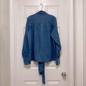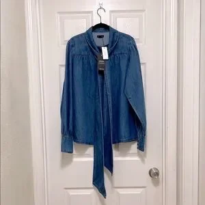 NWT KAREN MILLEN Denim Pussybow Blouse