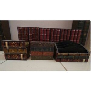 The Office Storage Helpers 2 CD Towers Tissue & Lidded Box Desk Org & 6 Mag Bins is a desktop organizer made of wood. It includes two CD towers, a tissue box holder, a lidded box for storage, and six magazine bins to help keep your desk neat and tidy. This organizer is perfect for keeping your office supplies in order and easily accessible on your desk.