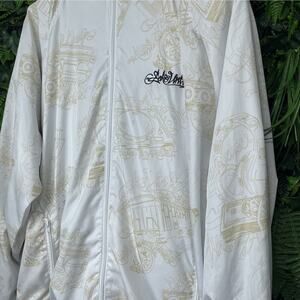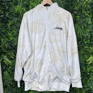 Y2K ECKO UNLTD Jacket Men XL White Full Zip All Over Print Hidden Hoodie 2355