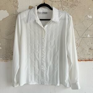 Vintage Pintuck Blouse Lace Collar Tuxedo Shirt Liz Baker Womens 14 Romantic Top