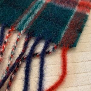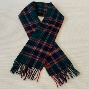 Soft and cozy 100% wool tartan plaid scarf from Clans Scotland. Clan: Mackenzie. Lightweight! 3” fringed ends. Colors: red, green, navy, white. Purchased in Scotland! 100% lambs wool. No known flaws. Worn 1x. Well cared for. Excellent condition! HL:18