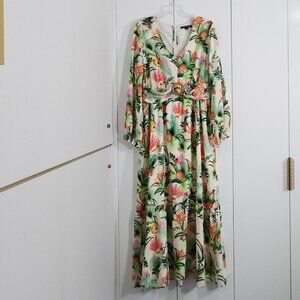 Boston Proper Long Sleeve Maxi Dress Women's Size 16 V-Neck Empire Waist