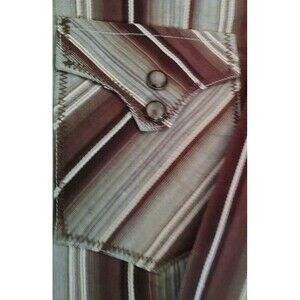The product is a set of two Western cowboy shirts in size M, made of cotton with a pearl snap closure. The shirts feature a striped pattern Geometric print pockets pearl snap long sleeves, and a collared neckline. The brand is BROOKS & DUNN, known for their Western theme and slimming fit. These button-up shirts are perfect for a casual yet stylish look, suitable for men who appreciate a touch of the Wild West in their wardrobe.