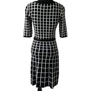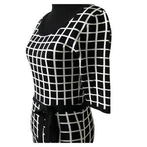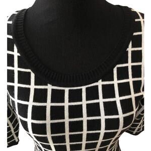 Gabby Skye Black White Geometric Design Sweater Dress 3/4 Sleeve Size Small