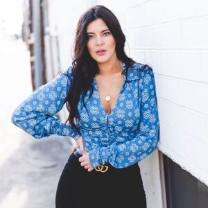 Free People Sydney Chambray Blue Top Size Medium Excellent Preloved Cond…